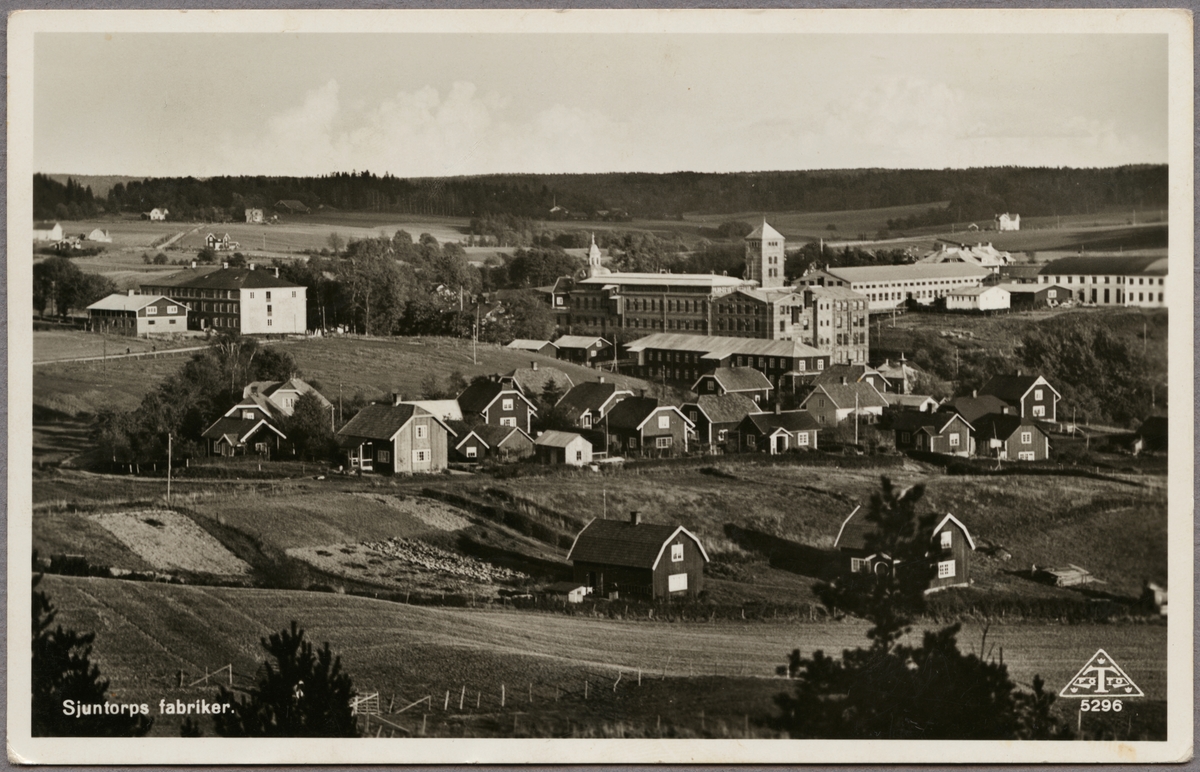 Titel: Vy över Sjuntorps fabriker med omnejd.