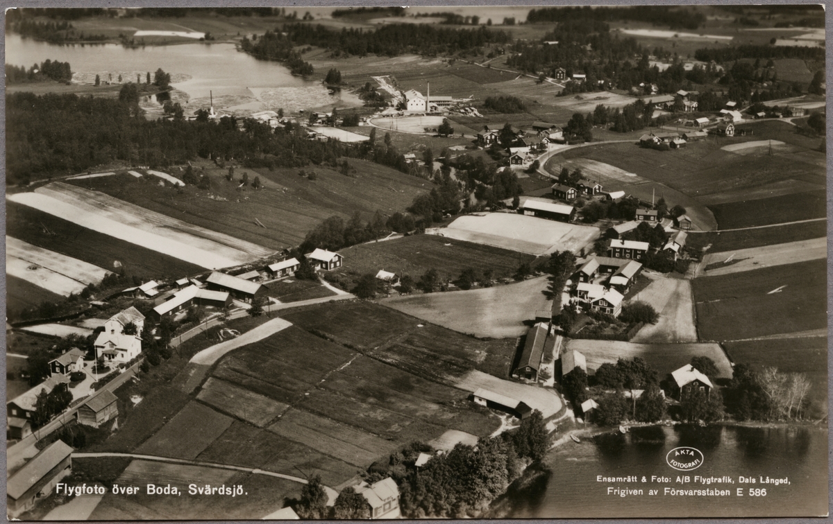 Titel: Utsikt över Boda med sågverk och sjön Toftan till vänster i övre delen av bilden.