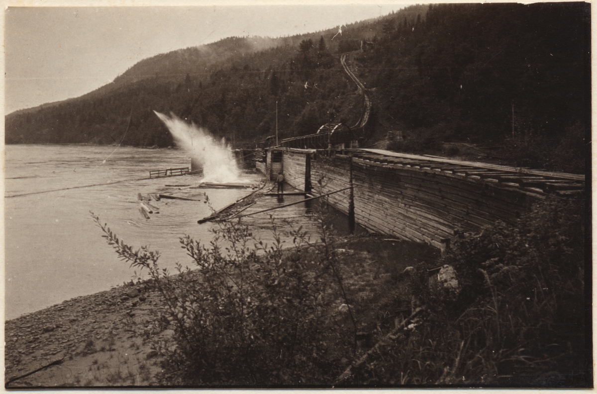 Timmertransport söder om Liden vid Indalsälven, Glimårännan.