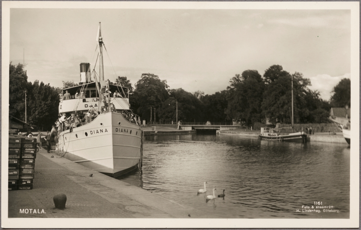 "Diana" förtöjd vid kajen till Göta Kanal i Motala.