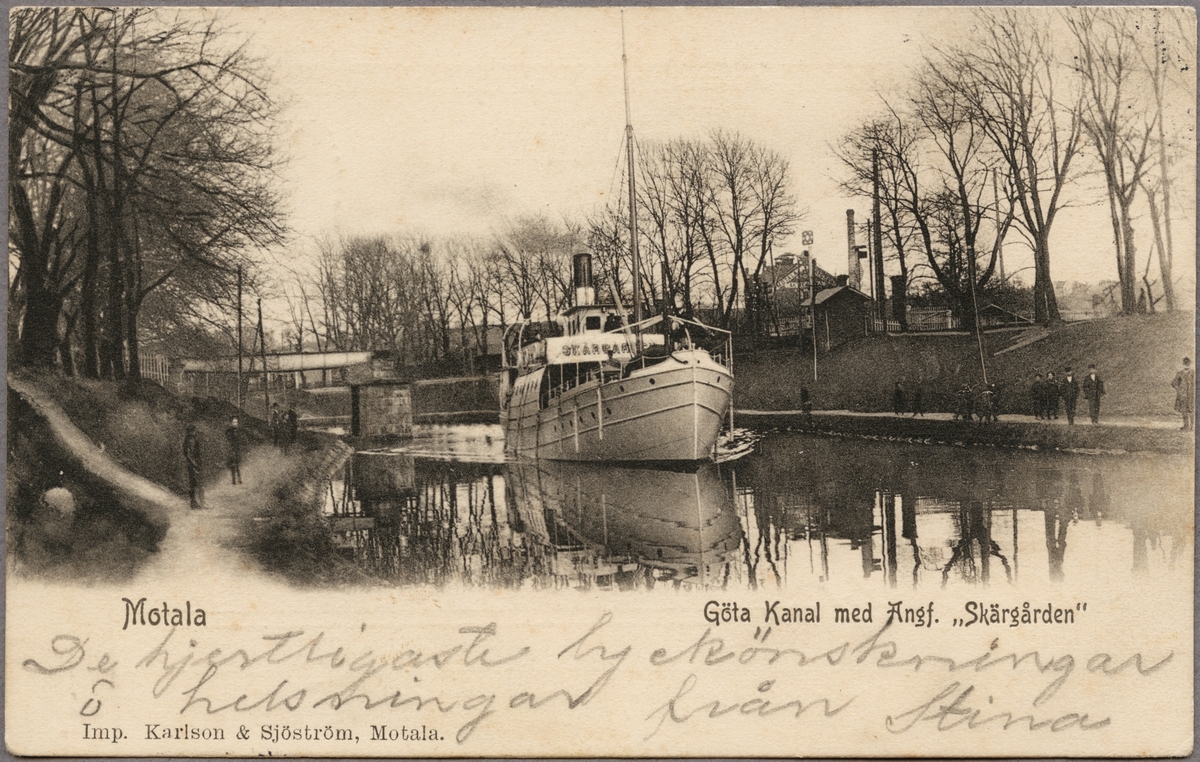 Titel: Ångfartyget Skärgården i Göta Kanal vid Motala.