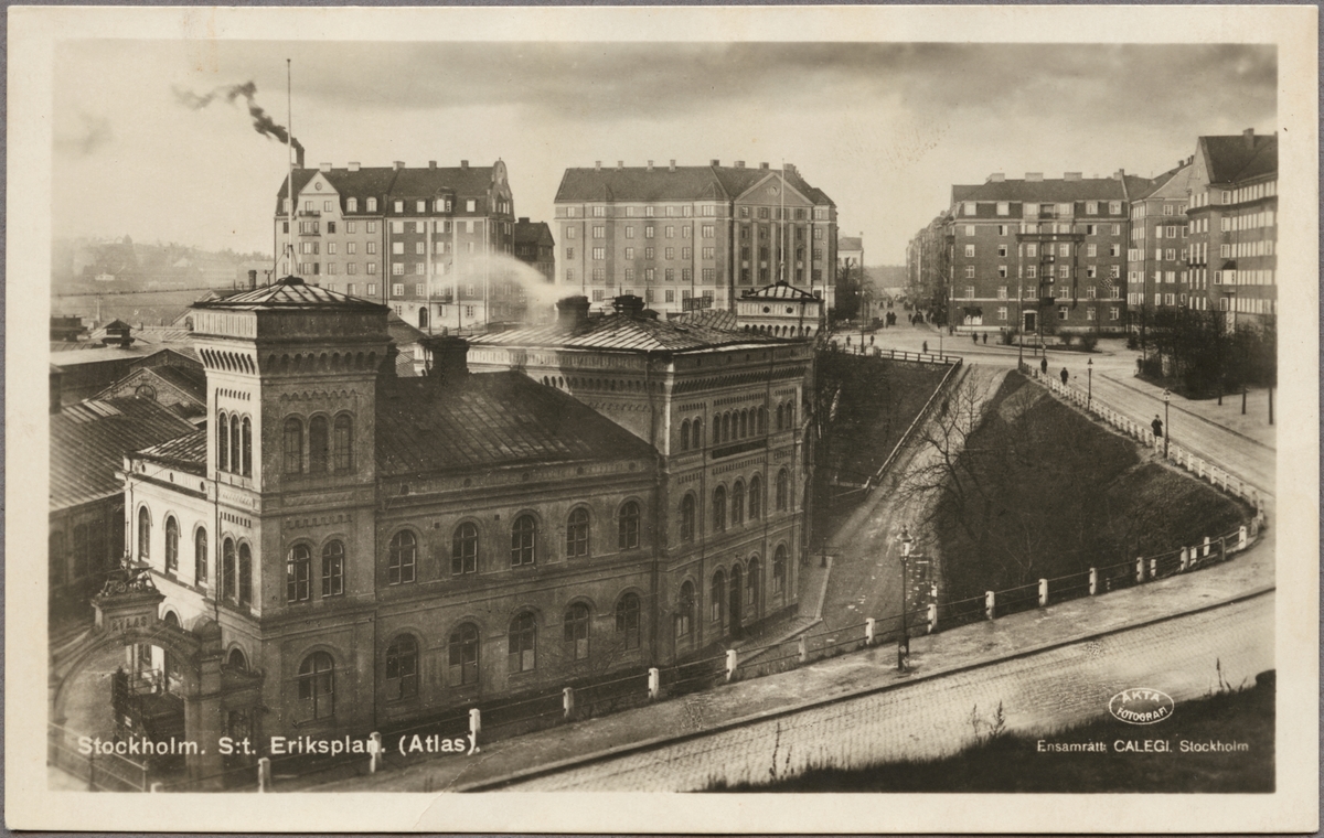 Titel: Stockholm. S:t Eriksplan med Atlasfabriken i förgrunden.