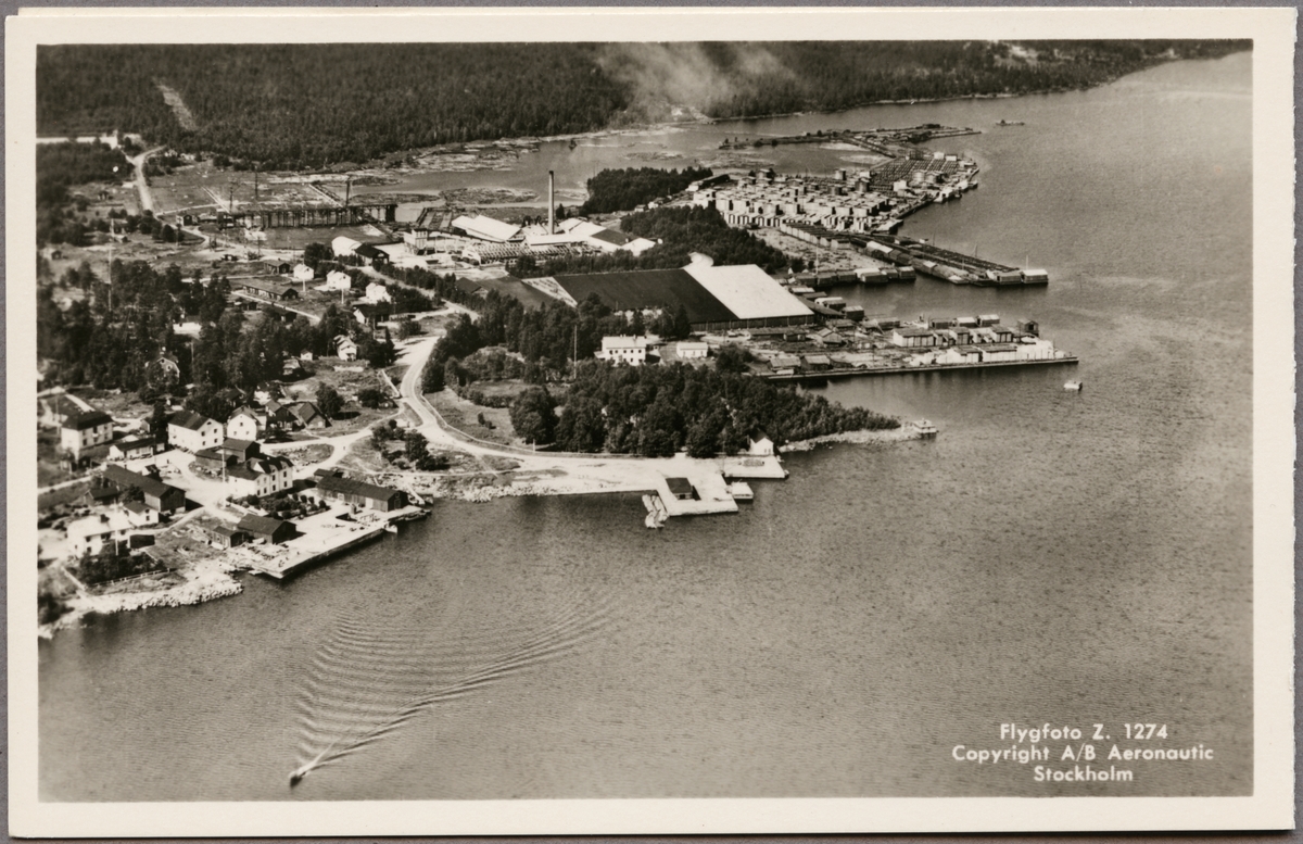 Titel: Flygfoto över sågverk i Båtskärsnäs.