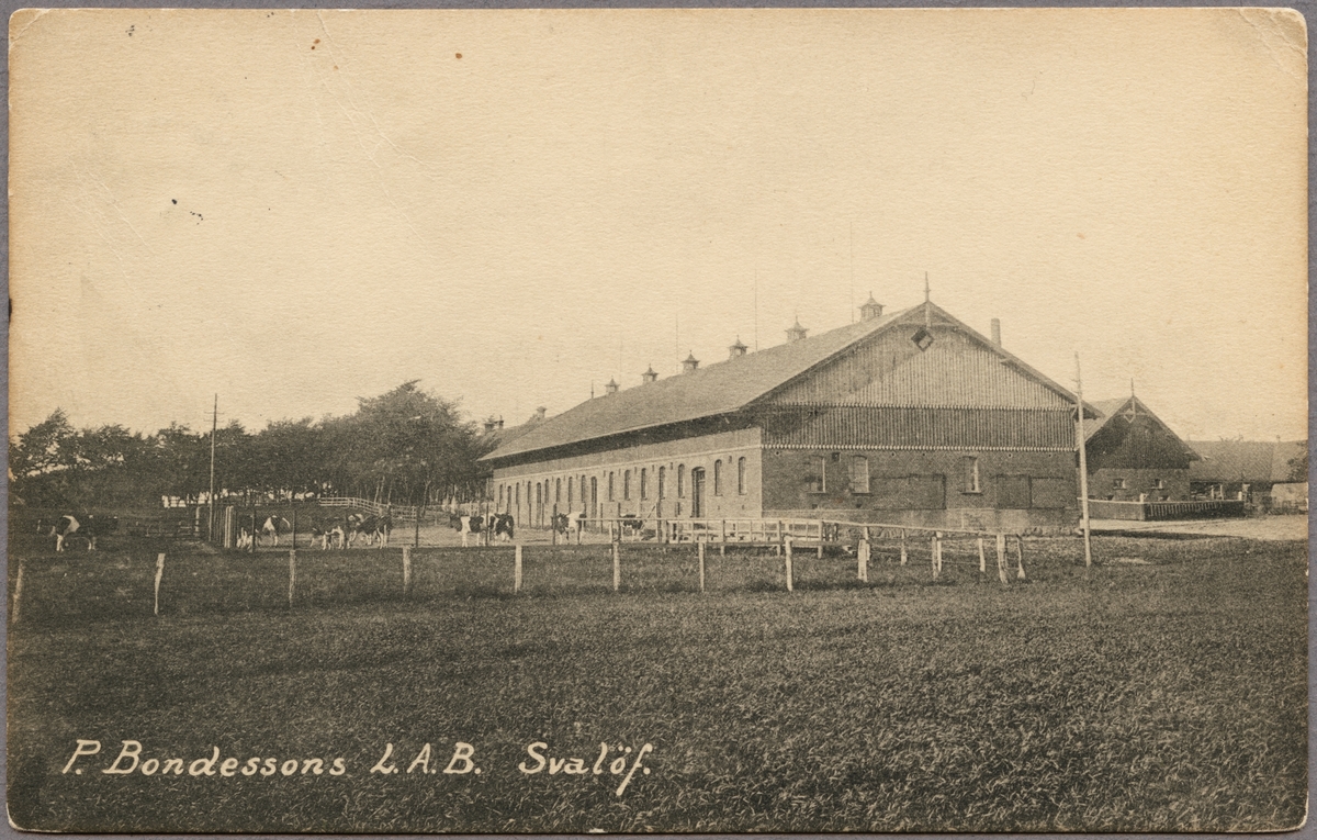 Titel: Ladugård med kor i bete.