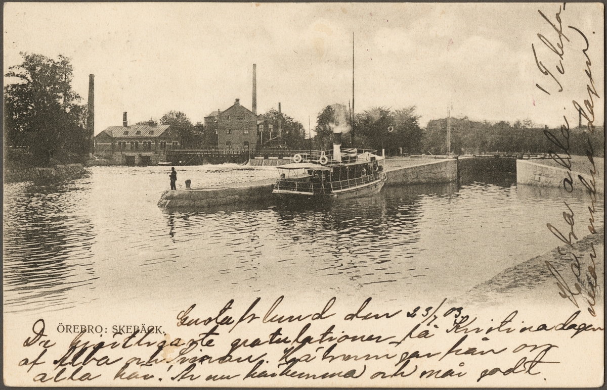 Titel: Svartån med Skebäck kraftstation och Örebro yllefabrik i fonden.