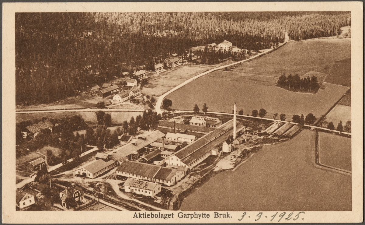 Titel: Flygfoto över Garphyttan bruksområde och jordbruk.