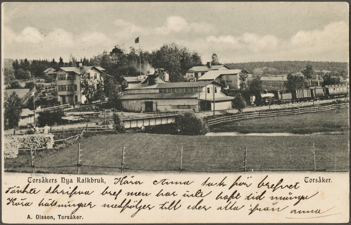 Titel: Vy över kalkbruk och järnväg.