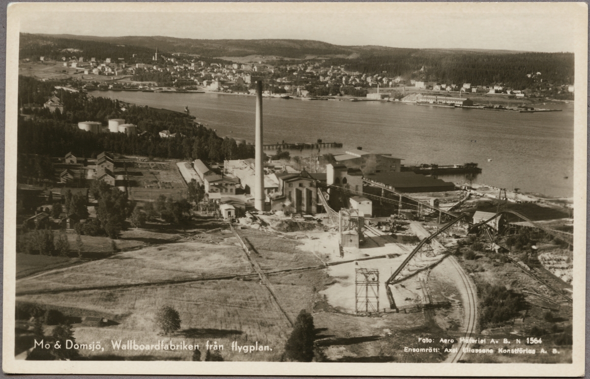 Flygfoto över MoDo fabrik och Örnsköldsviksfjärden.