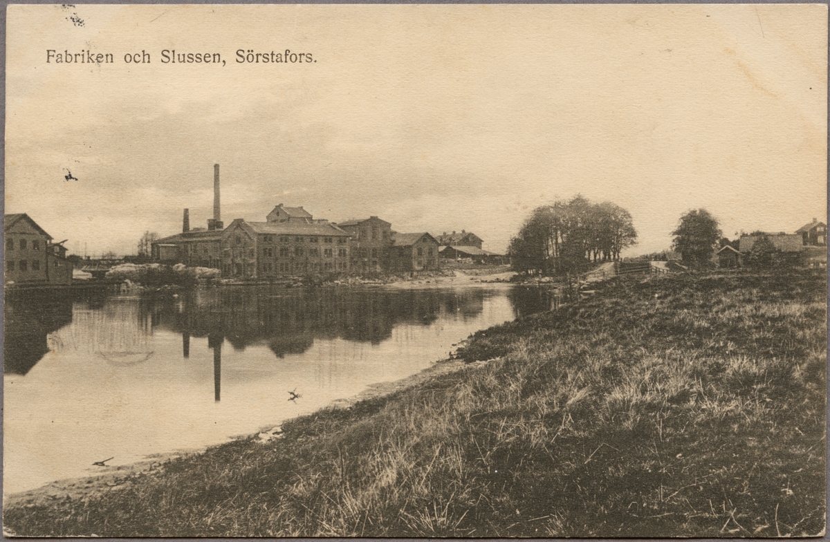 Titel: Fabriken i Sörstafors med slussen i Kolbäcksån.