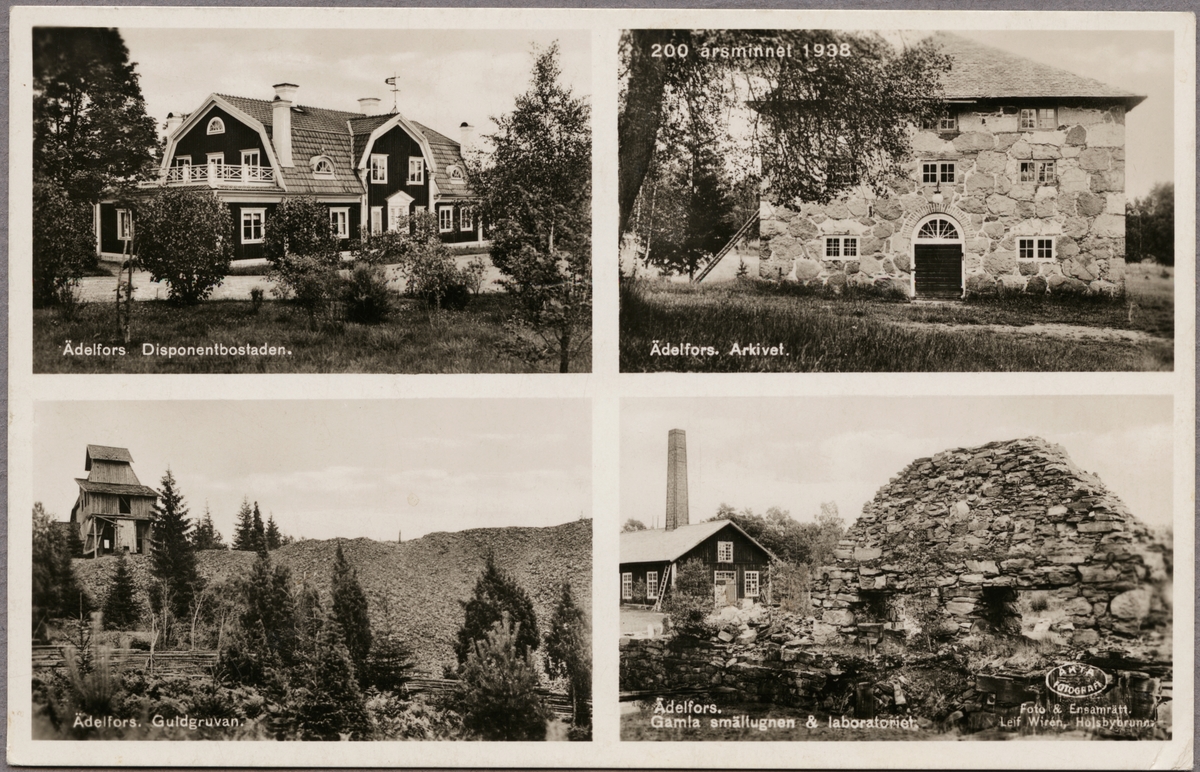 Bildkollage på byggnader från gruvindustrin i Ädelfors.