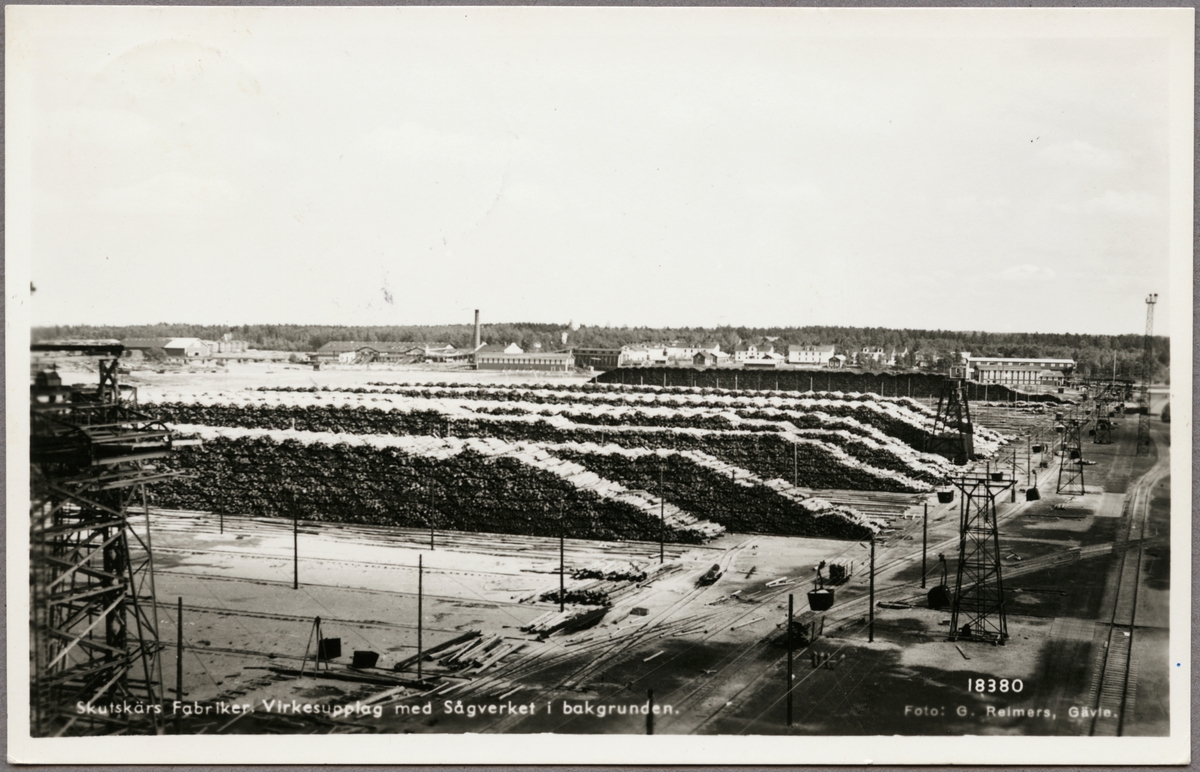 Virkesupplag vid Skutskärs pappersmassefabrik.