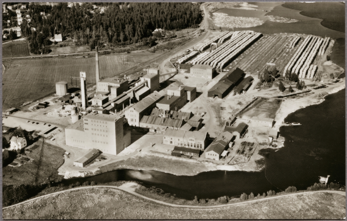 Flygfoto över Pappersmassefabrik i Vannsätter.