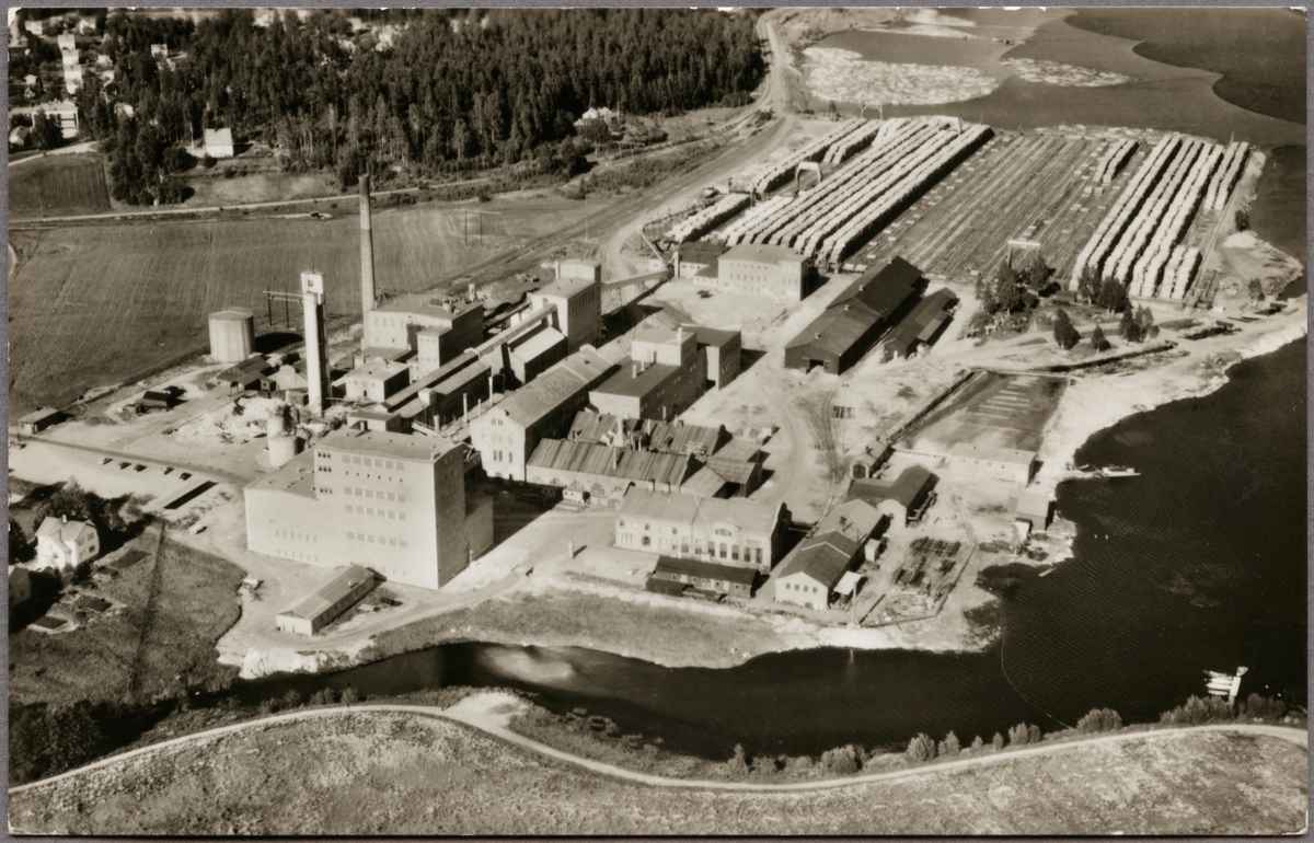Flygfoto över Pappersmassefabrik i Vannsätter.