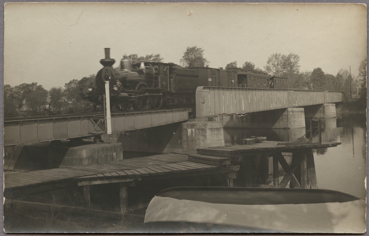 Titel: Ångtåg på bron över Klarälven.