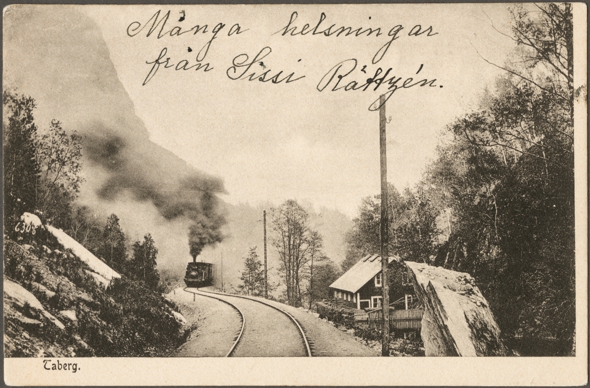 Titel: Ett ånglok i stigning vid Taberg.