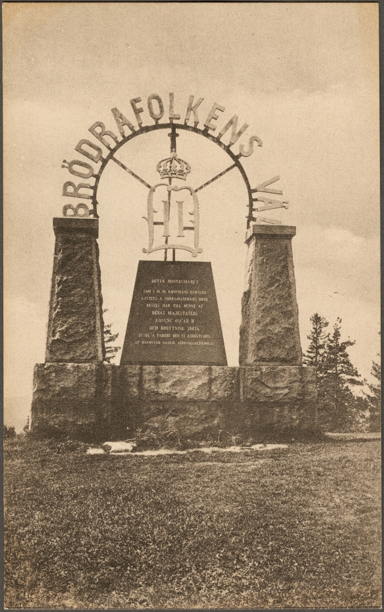 Taberg. Minnessten till minne av Konung Oscar II´s och Drottning Sofias besök 1895-08-27. Stenen rest av Halmstad Nässjö Järnvägsaktiebolag, HNJ.