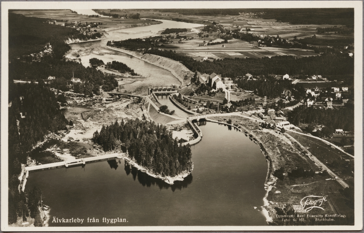 Titel: Flygfoto över Dalälven och Älvkarleby kraftverk.