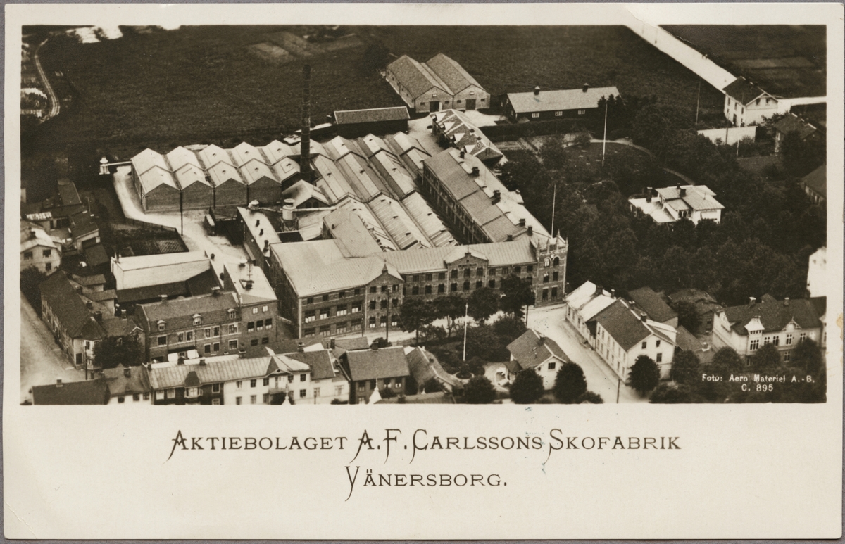Titel: Flygfoto över Carlssons skofabrik i Vänersborg.