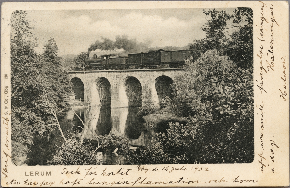 Titel: Järnvägsbro med tåg över Säveån.