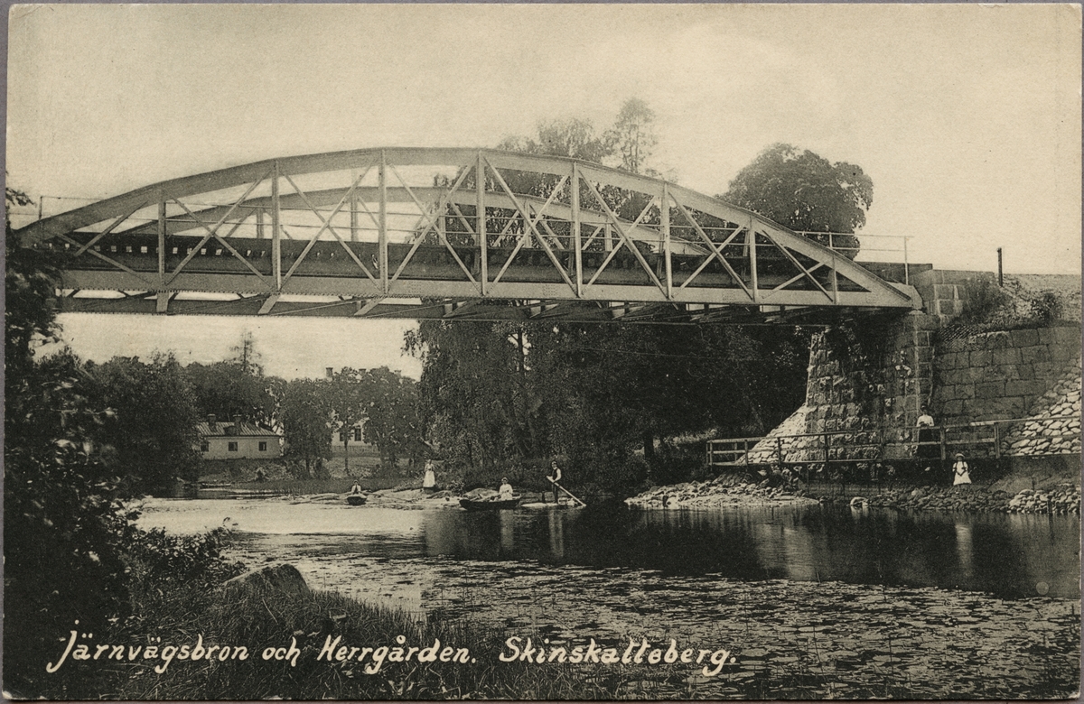 Titel: Järnvägsbro i Skinnskatteberg med herrgården i bakgrunden.