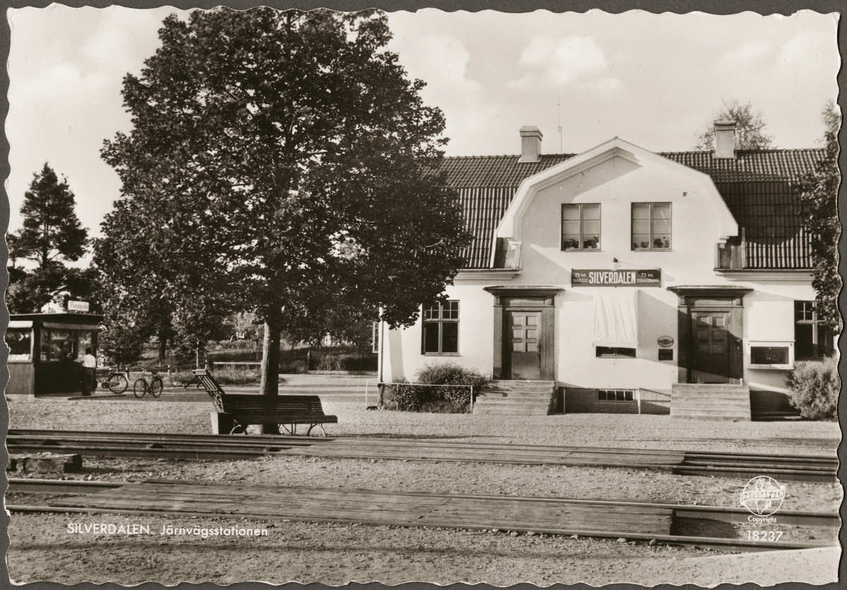 Titel: Stationsområde med vy på stationshus och kiosk.