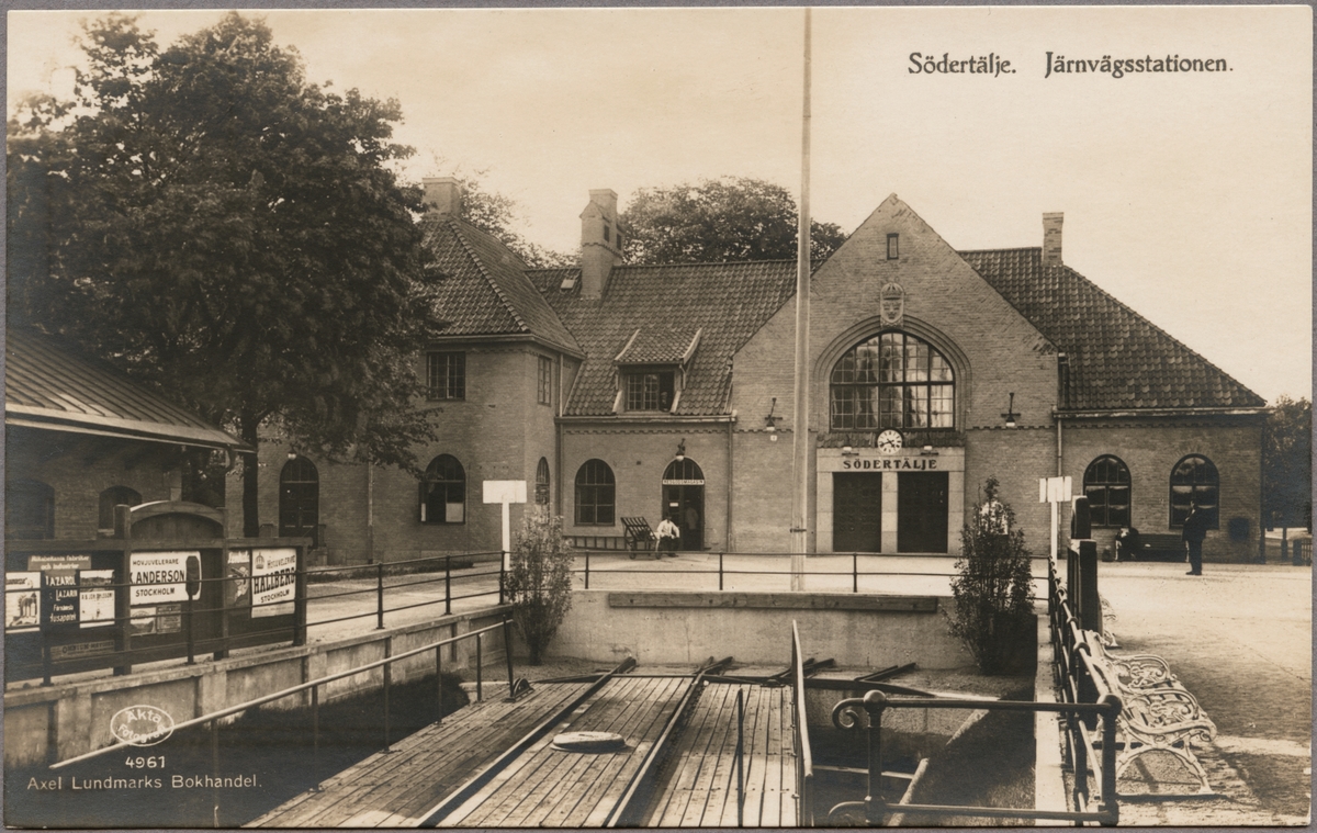 Titel: Vändskiva vid stationsområde med stationshus i bakgrunden.