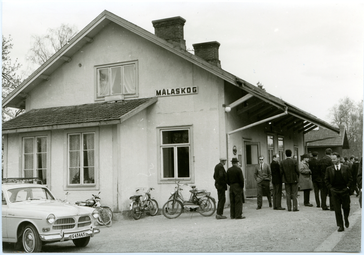 Trafikplats anlagd 1874. Envånings putsat stationshus. Expeditionslokalerna och väntsalen moderniserade 1945. Bilen, av märket Volvo 121, lanserades i Sverige 1956. Mopeden, mitt i bild, är en Gripen.