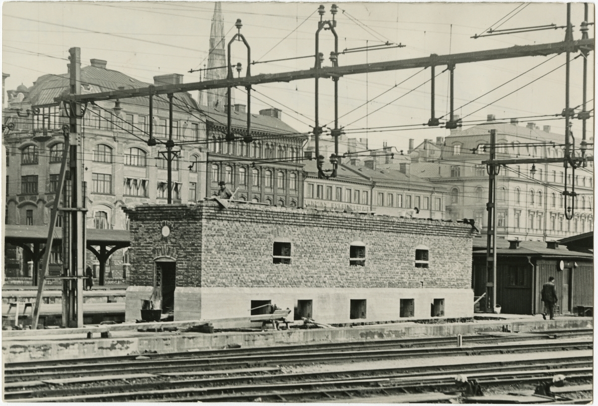 Det nya ställverkshuset under uppförande vid Stockholms Centralstation, tidigt 1930-tal.