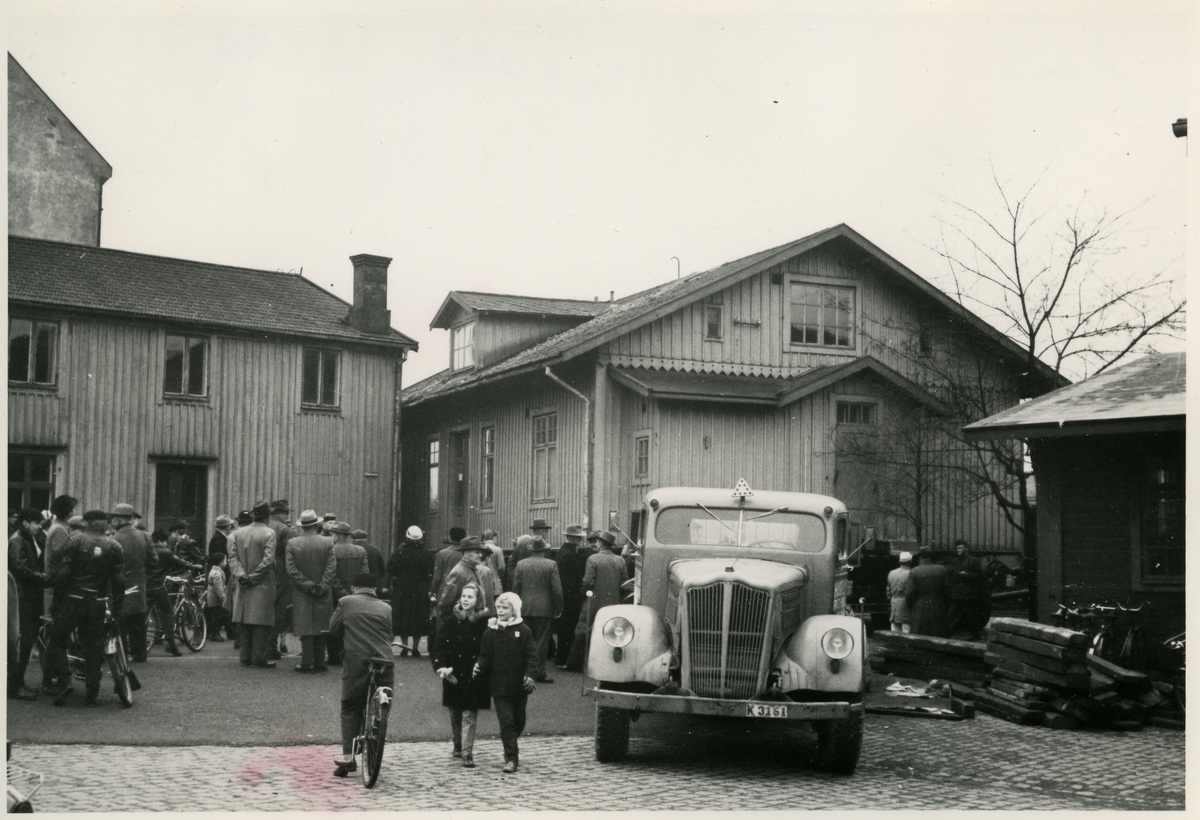 Titel: Flyttning av gamla stinsbostaden i Nässjö till Hembygdsparken 1957.