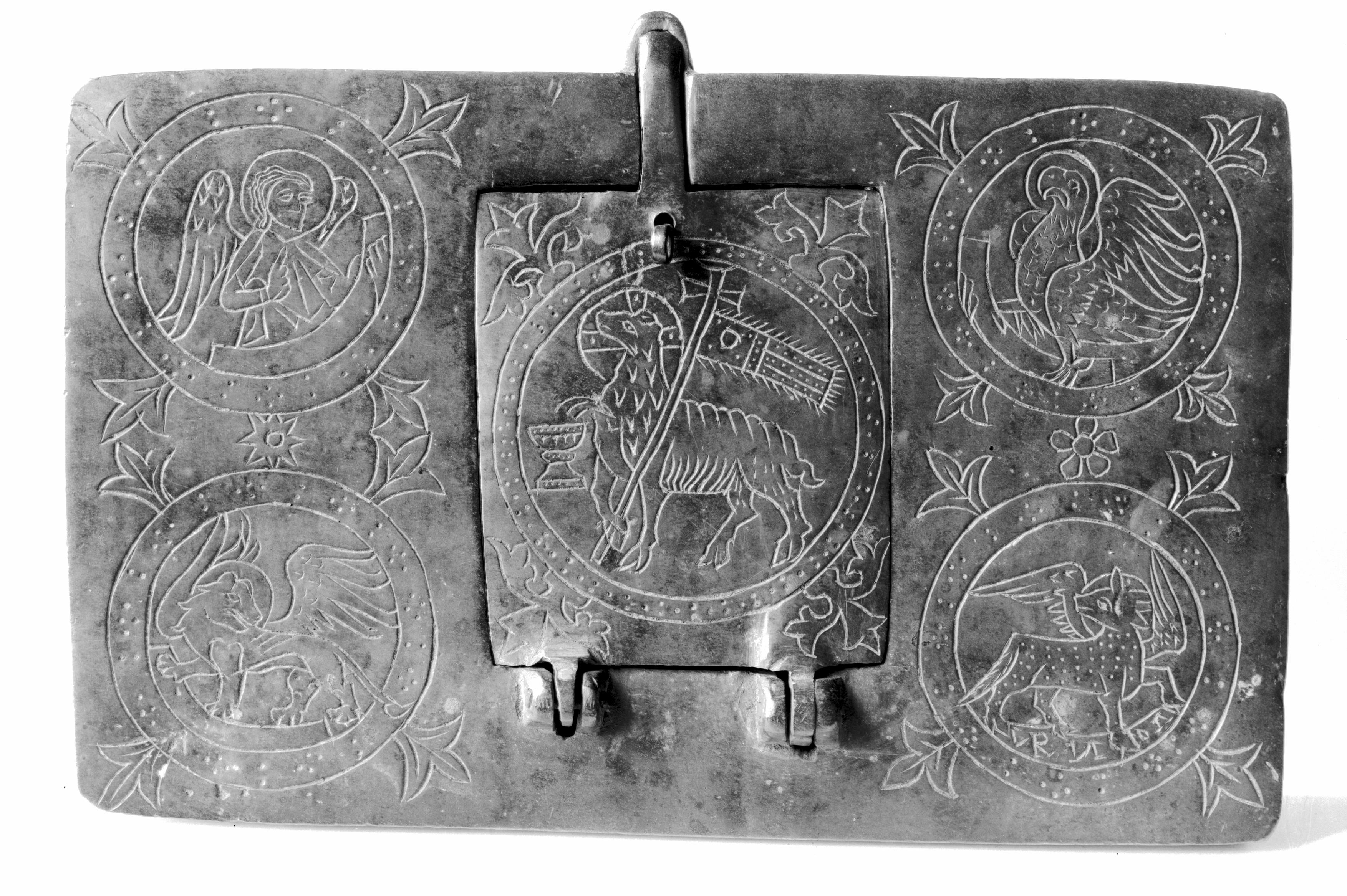 Beskrivning: Relikskrin av brons. Inhemskt arbete? Omkring 1300.