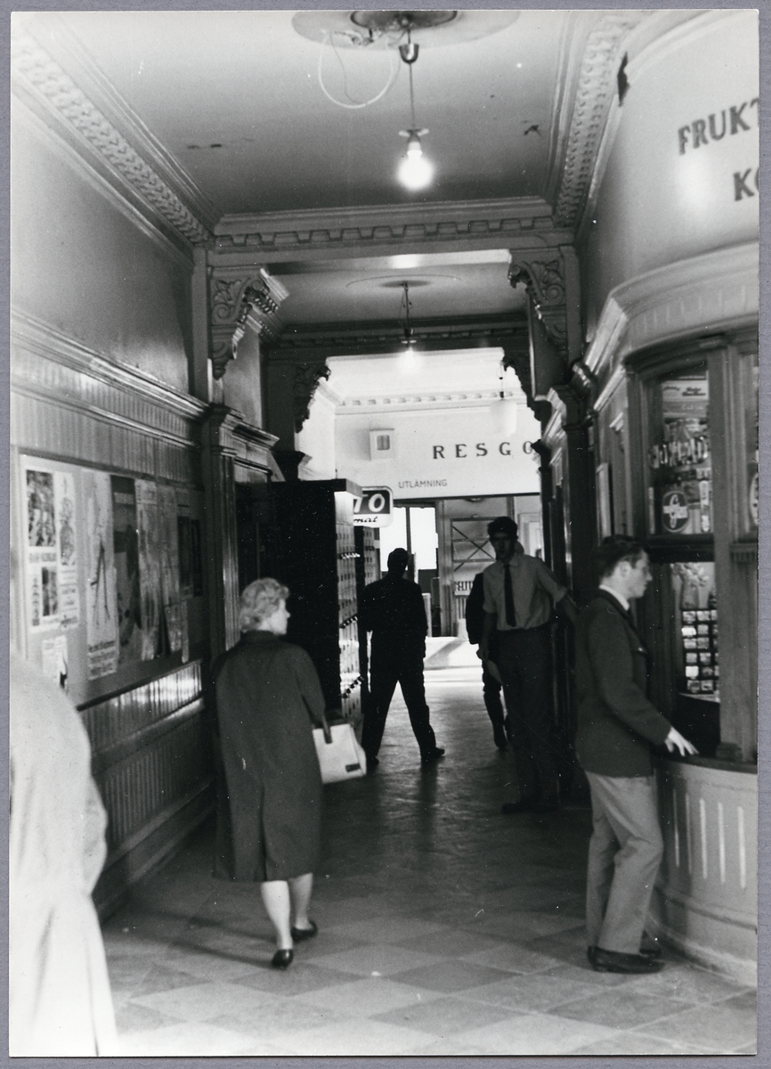 Titel: Förvaringsskåp och kiosk på Borås centralstation. I bakgrunden resgodsexpeditionen.