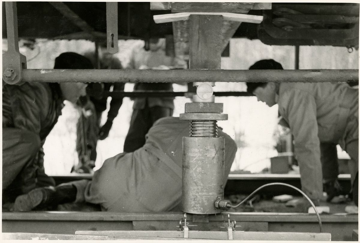 Titel: Banarbete efter urspårning av tåg 93, Nordpilen, på sträckan mellan Simeå och Undersvik 1956-03-27.