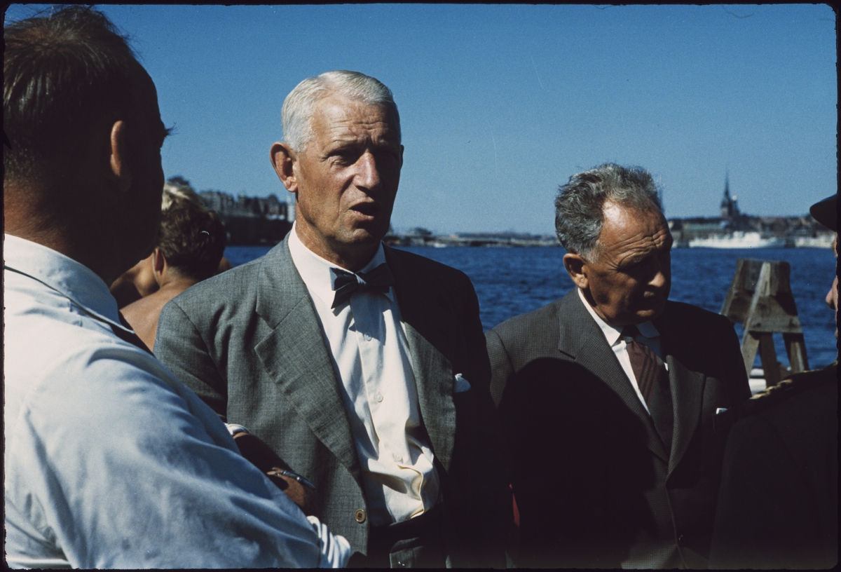 Titel: Bärgningsledare Axel Hedberg i mitten till vänster och längst till vänster Edward Clason.