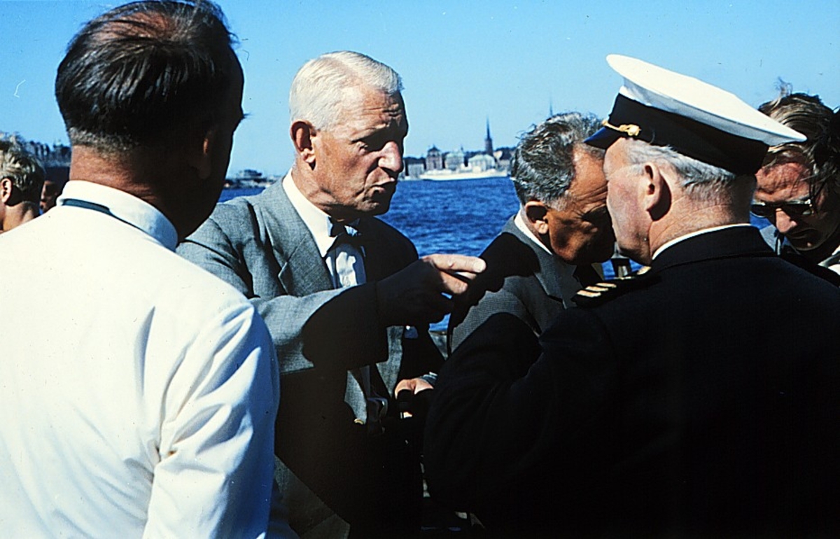Titel: Bärgningsledare Axel Hedberg i mitten till vänster och längst till vänster Edward Clason.