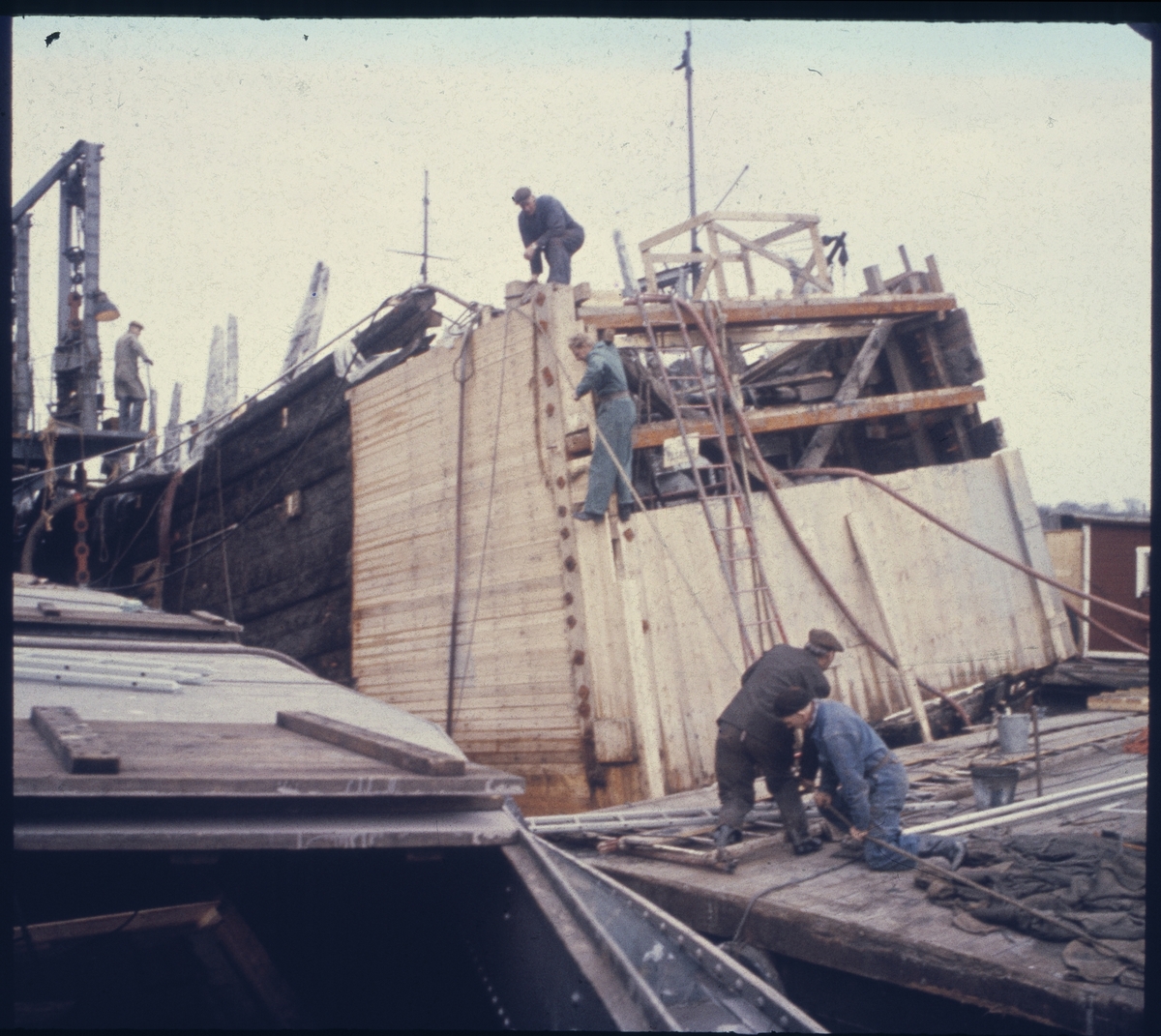 Vasa, med det provisoriskt byggda akterpartiet, några dagar efter det sista lyftet.
