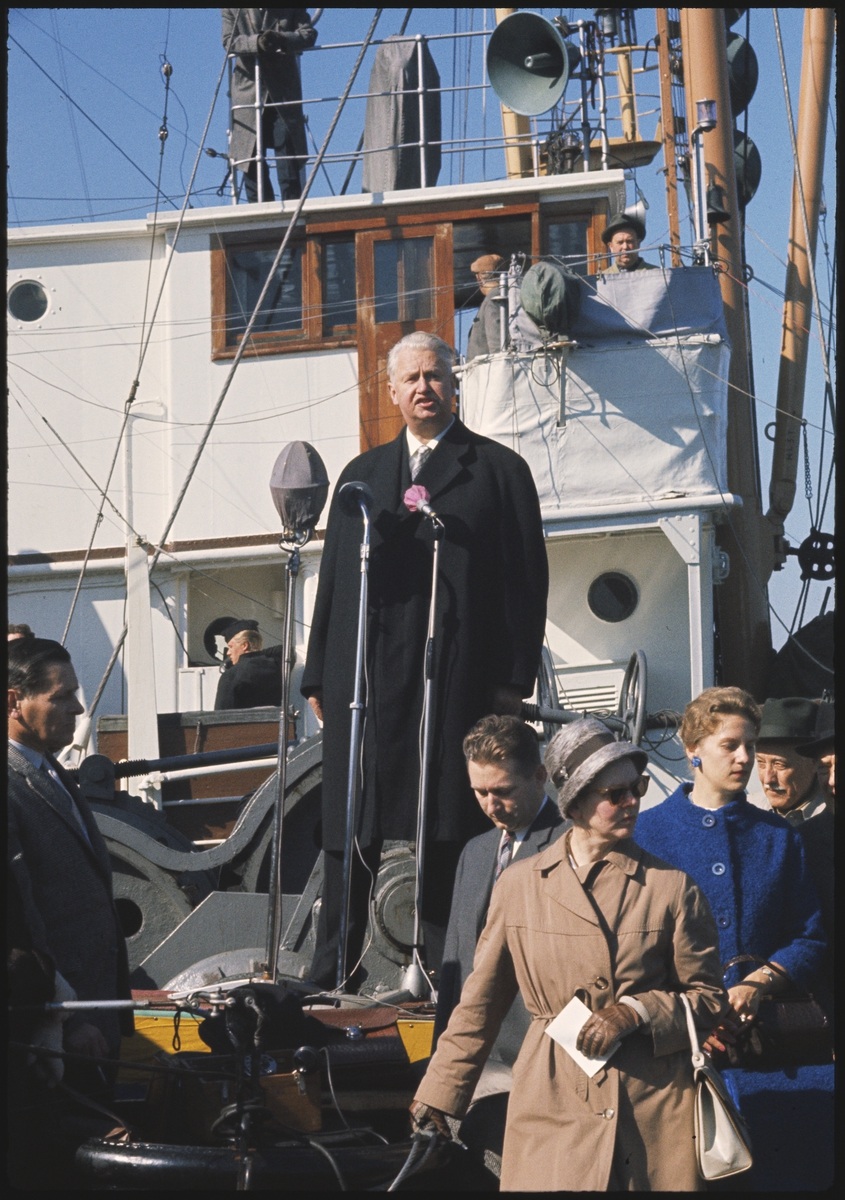 Titel: Stadsfullmäktige ordförande Carl - Albert Andersson håller tal vid Vasas bärgning.