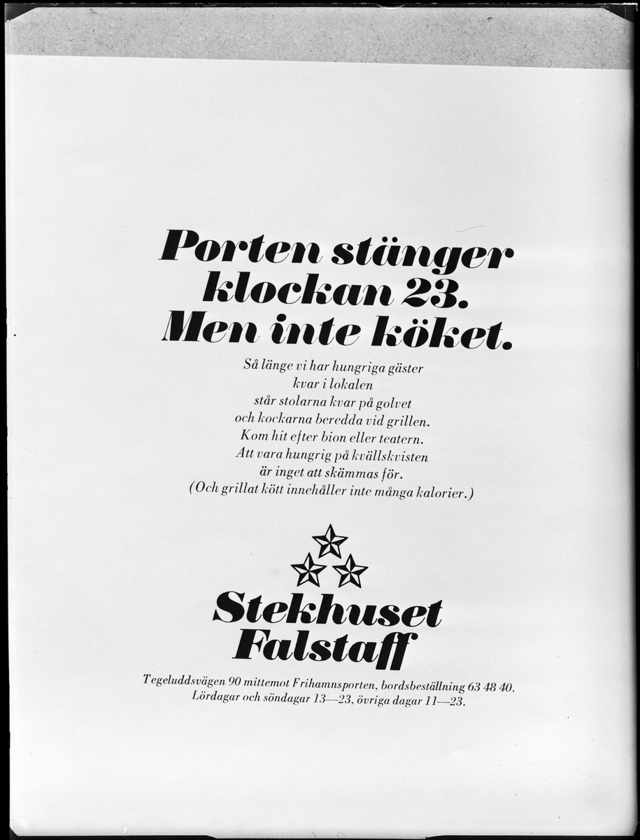 Titel: "STEKHUSET FALSTAFF-ANNONS" FÖR TEATERREKLAM