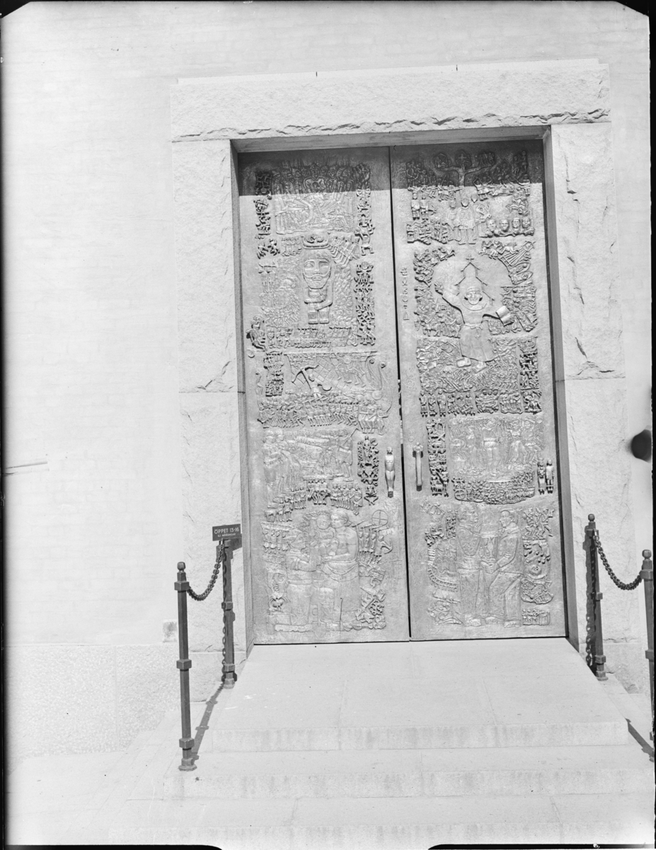 SKULPTERADE ENTRÉDÖRRAR AV BROR MARKLUND, MUSEILEKTOR MOBERG