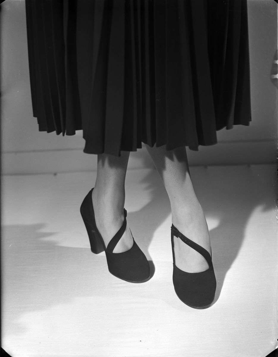 Kvinna med plisserad kjol och skor