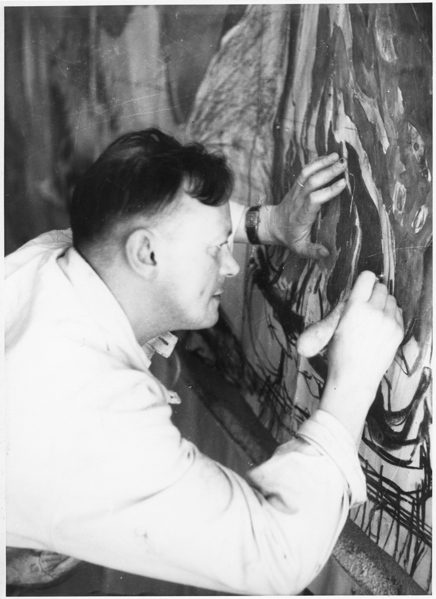 Heliga korsets kapell, fresk av Sven Erixson uppföres