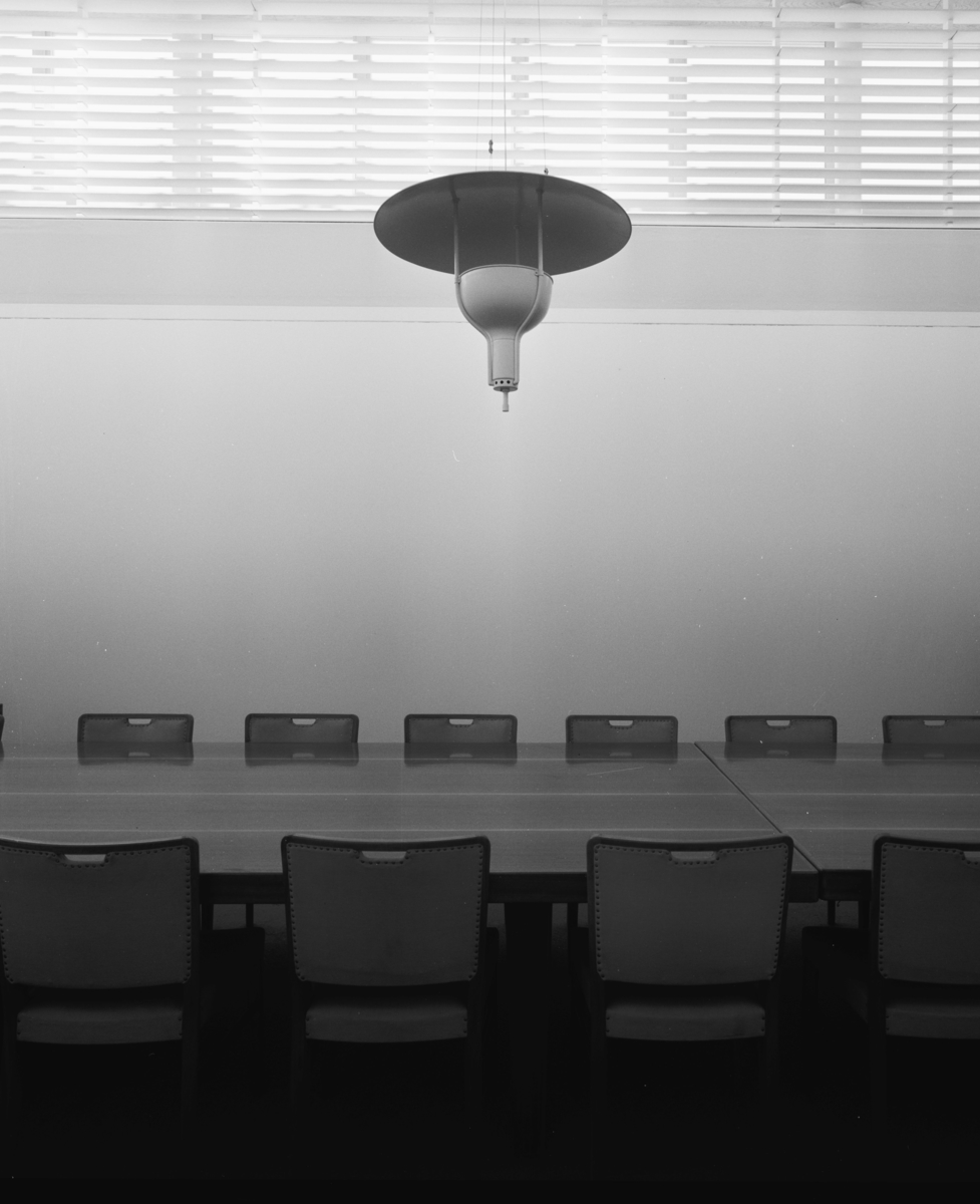 Interiör, ljusinsläpp från fönster ovanför sammanträdesbord