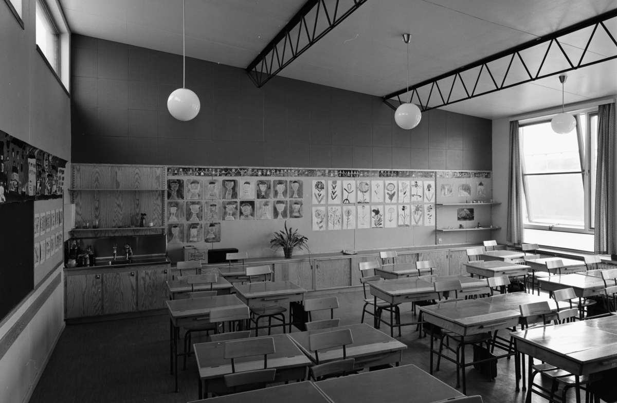 Interiör, ett av småskolans klassrum. Ljusinsläpp från fönster