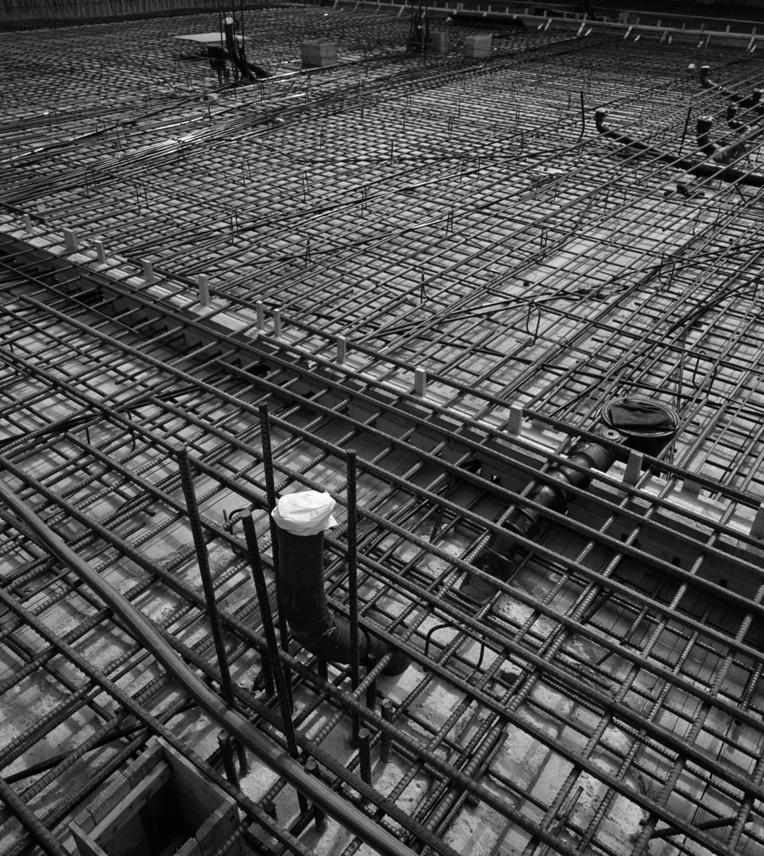 Exteriör, detalj av byggarbetsplats med armeringsjärn, vid Konserthuset
