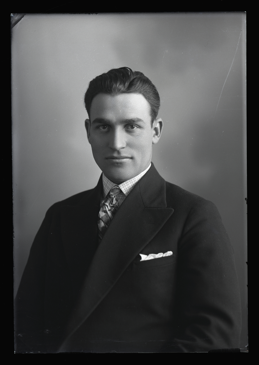 Mansporträtt. Axel Georg Eriksson, Tomtebo 82, Hallstahammar, Tel 33.