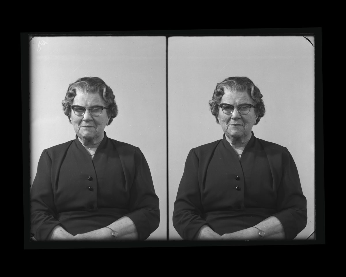 Kvinnoporträtt, passfoto; Fru Elly Meijergård,