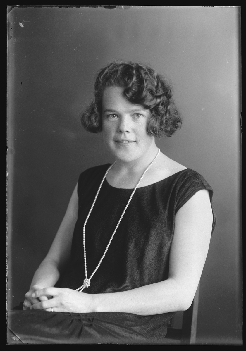 Porträtt. Elly Ivarsson. Sofielund, Strömsholm. Ur Gustaf Åhmans bildarkiv.