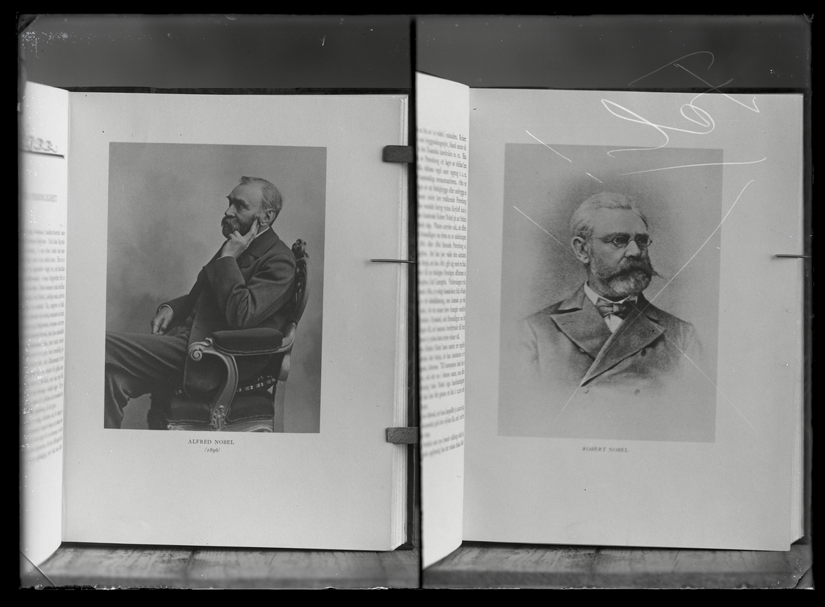 Boksida, mansporträtt, Alfred och Robert Nobel. Direktör Celsing, Kolbäck.