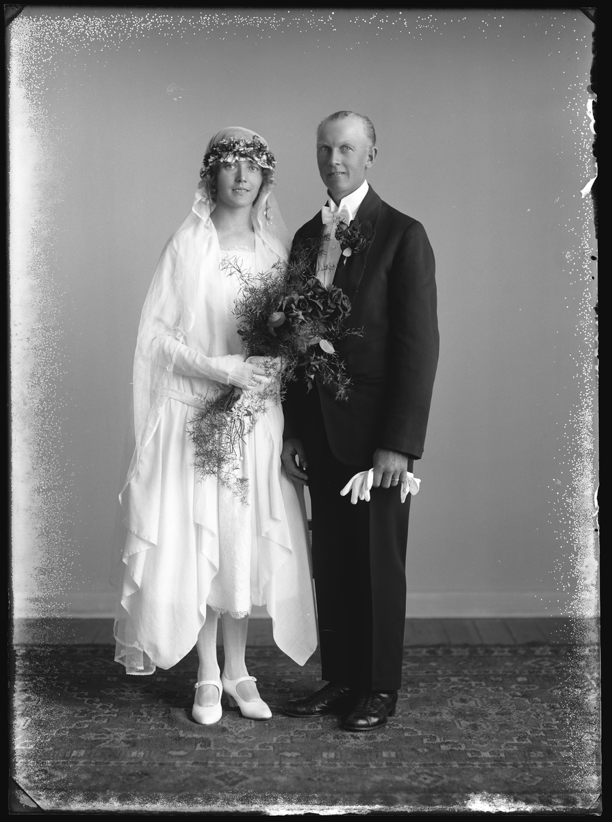 Grupporträtt, brudpar. Karl Karlsson, Borgby, Kolbäck.