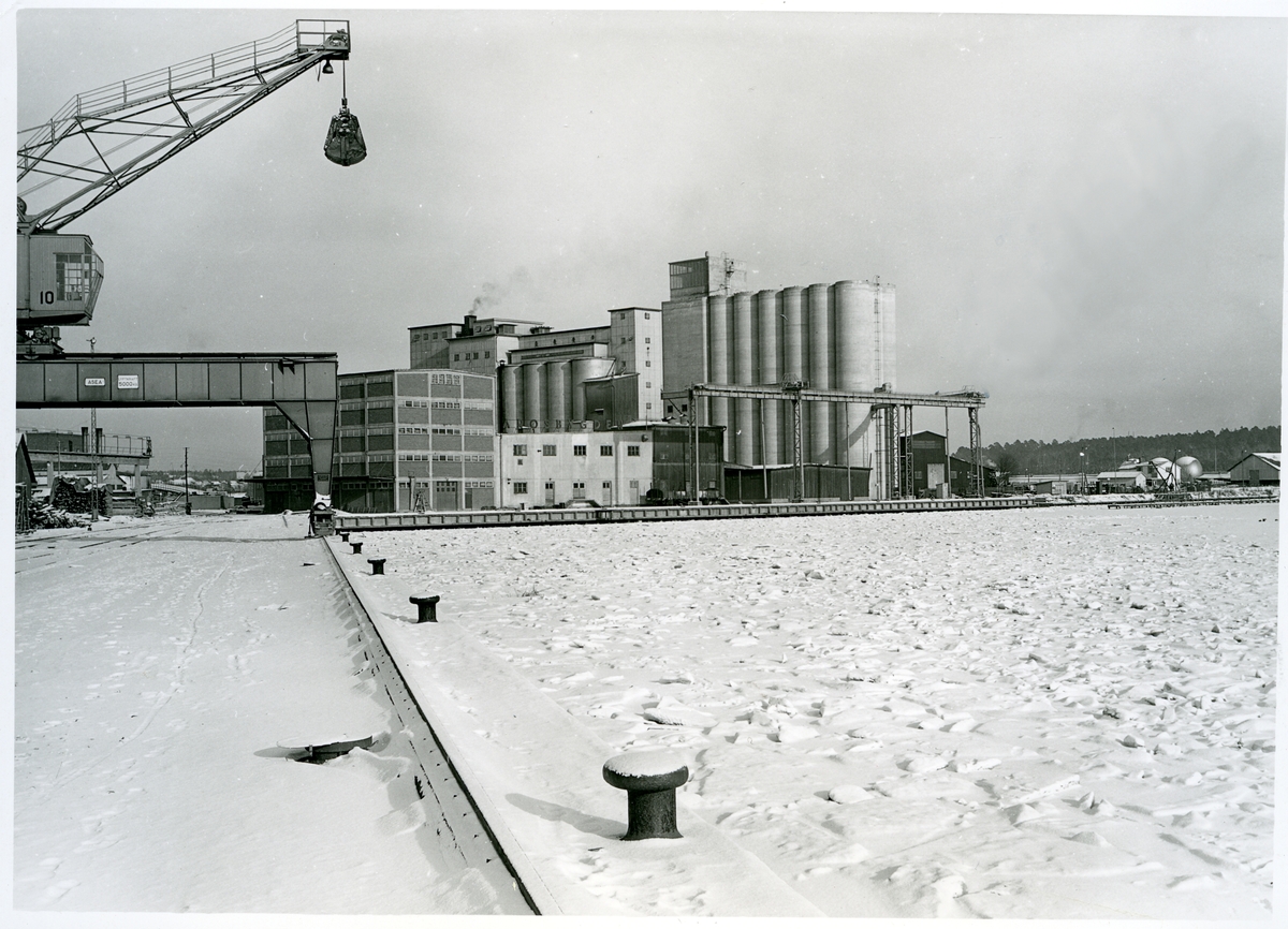 Titel: Västerås, Munkängen. Vintermotiv från hamnområdet i Västerås, med Silon m.m.
