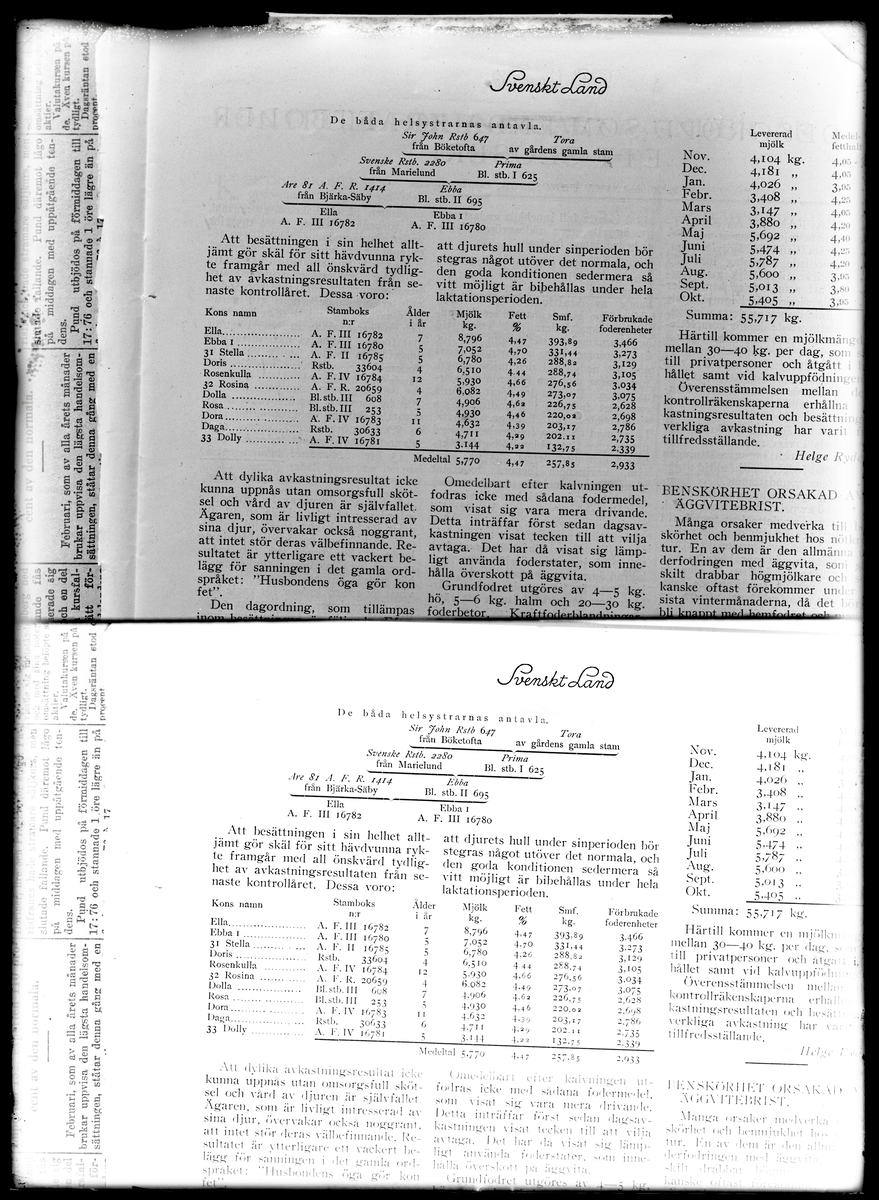 Statistik, mjölkning. Direktör Celsing, Kolbäck.